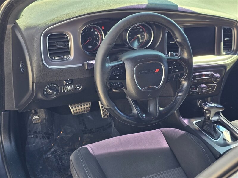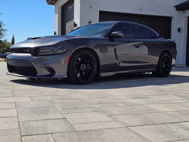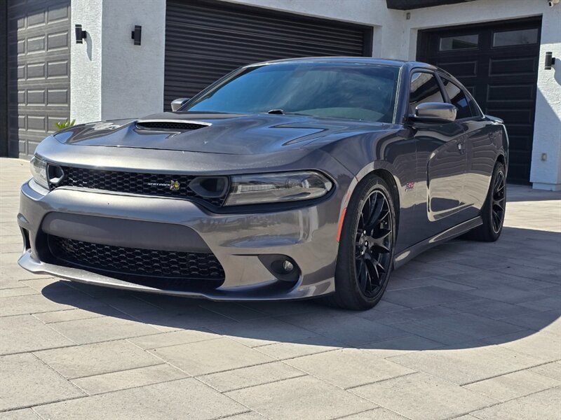 2019 Dodge Charger R/T Scat Pack — Destroyer Gray Clear Coat exterior, Black interior. This is a full-bore muscle machine with the factory 6.4L HEMI V8 pumping out 485 hp and 475 lb-ft of torque. Mated to the hardened 8-speed automatic TorqueFlite transmission and rear-wheel drive, this Charger launches with authority and delivers raw, immediate power every time you stab the throttle. EPA: 15 MPG city / 24 MPG highway. Vehicle condition: excellent overall.